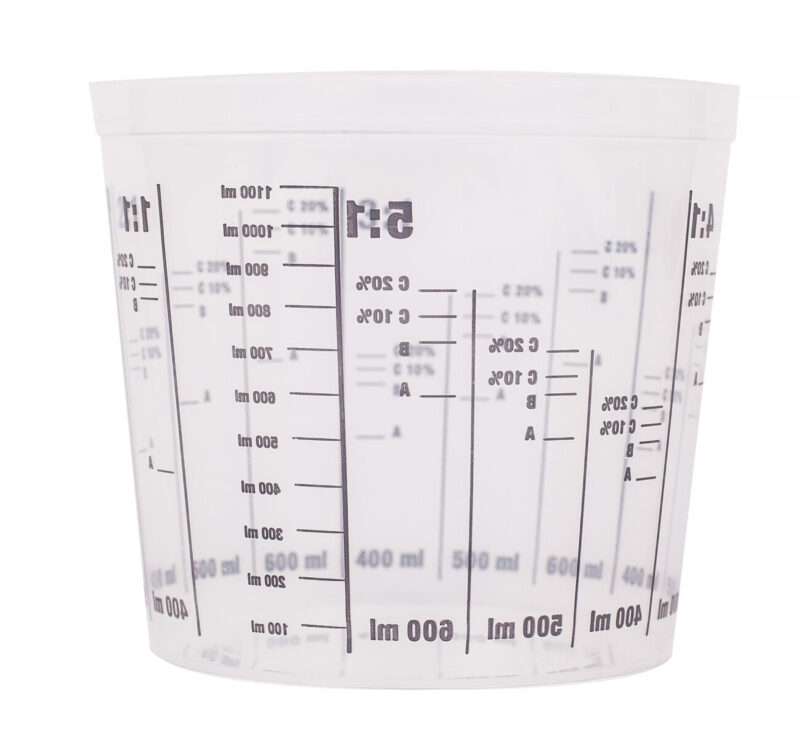 The clever Epoxy Mixing Pot. A tough, flexible, reusable, plastic 1100 ml (1.1 Litre) mixing pot graduated for easy mixing of Epoxy Resins. Internally marked for ease of viewing, and graduated with volume mix quantities.