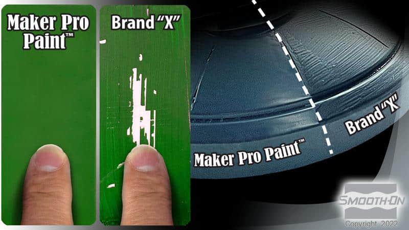 When used with the Adhesion Promoter, Maker Pro Paints™ will bond tenaciously to various rigid substrates – including: rigid urethanes, rigid urethane foams, epoxy plastics, wood, fiberglass, aluminum, concrete, plasters, steel, and more. When mixed with the FLEX Additive, Maker Pro Paints™ will become more elastic and bond to flexible or semi-rigid substrates including fabrics, semi-rigid urethane resins, flexible urethane foams, urethane rubbers, and latex rubbers.
