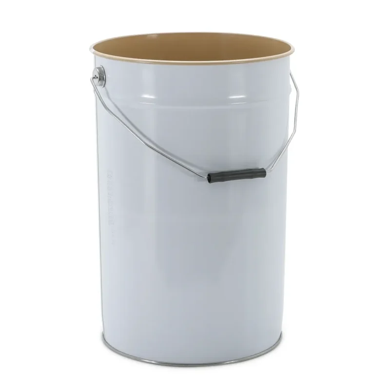 This 25-litre white metal pail is manufactured from a high-grade tinplate and is UN approved. The pail has a lacquered interior which is ideal for storing water-based products including paints, oils, chemicals, resins, adhesives and coatings.