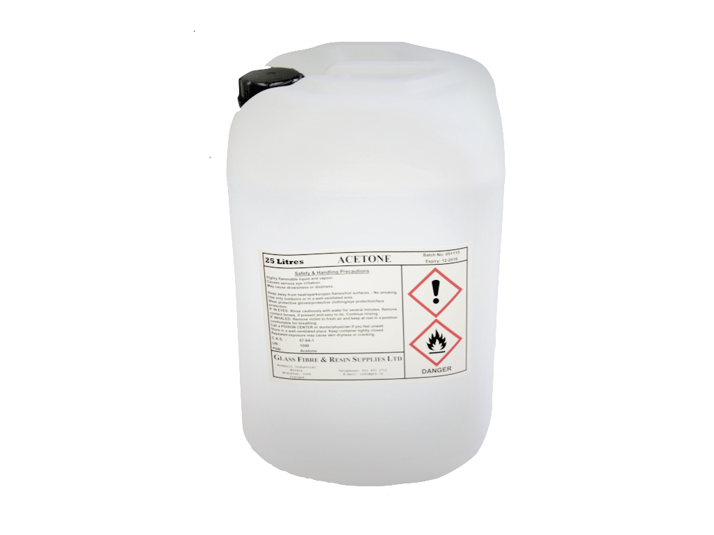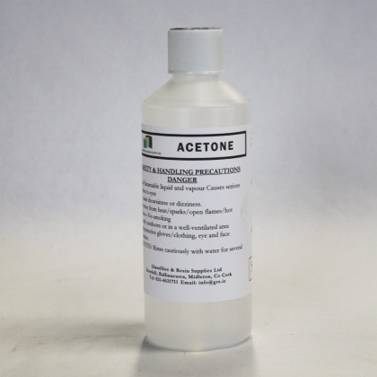 Acetone is used to remove uncured polyester and epoxy resin from rollers, brushes and surfaces. It is highly flammable and is not recommended for use on skin.