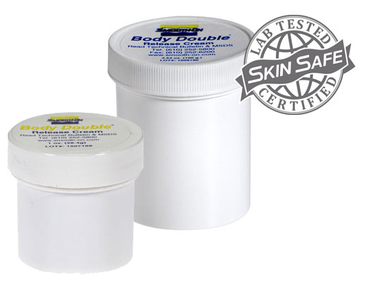 Body Double™ Release Cream is a non-toxic skin conditioner that will aid in releasing Body Double™ mold rubber from skin surfaces with or without hair. Body Double™ Release Cream is skin safe and certified by an independent laboratory. It washes off with soap and water. It is highly concentrated, so a little goes a long way. To use, wash intended body section with soap and water and dry thoroughly. Liberally apply Body Double™ Release Cream to all skin surfaces (bare and hair covered) that will contact Body Double™ mold rubber. Take special care to aggressively message and work the cream into and over body hair.