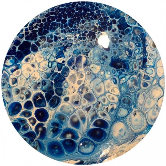 Cell-Base is used just like a regular pigment which you mix into your resin, the only difference is that you use it as your base colour. For best results you need to work at a steady pace with no pauses between steps, once you pour your base layer the pigment starts losing reactivity so don’t wait too long before adding your top colours. As soon as your top colours are down it’s time to swipe! We found that a thin top layer and a light touch to the swipe works best, adding heat will help more cells to form.