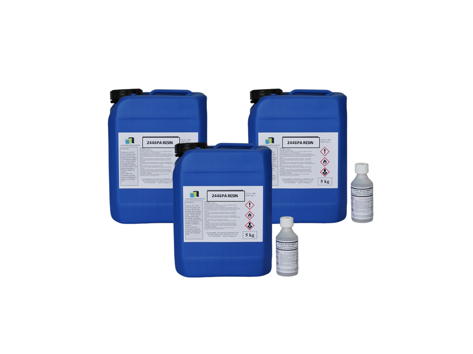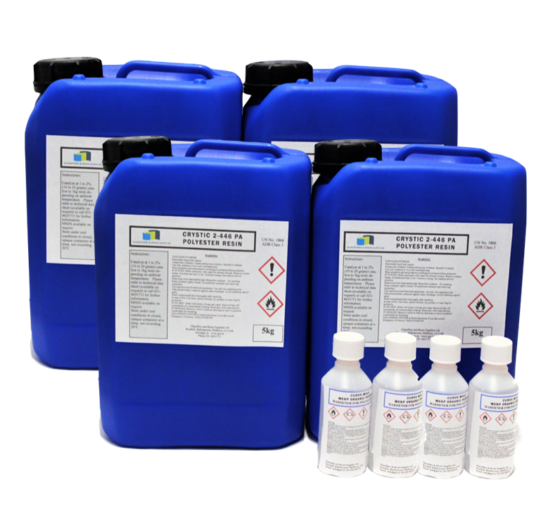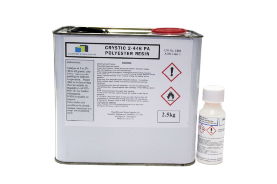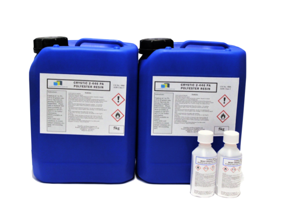 Crysitc 2446PA is an orthophtalic pre-accelerated laminating resin, low styrene emission, thixotropic unsaturated polyester resin. It contains a colour change system and will change from blue to natural colour when the catalyst is added to the resin. Crystic 2446PA is a versatile resin and maybe used for most general purpose mouldings and repairs.