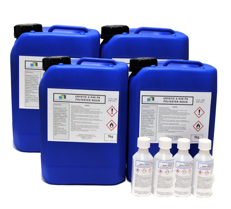 The resin should be catalysed at 1% to 4% (10 to 40grms) depending on the ambient temperature. Please refer to the technical data sheet. Lloyd’s approved.