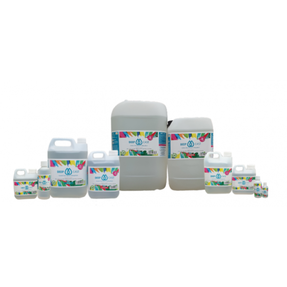Deep Cast is an unaccelerated clear epoxy casting resin system, which offers a long open time for bubble removal and precise article placement. It also avoids high exothermic reaction and the resulting shrinkage after curing.