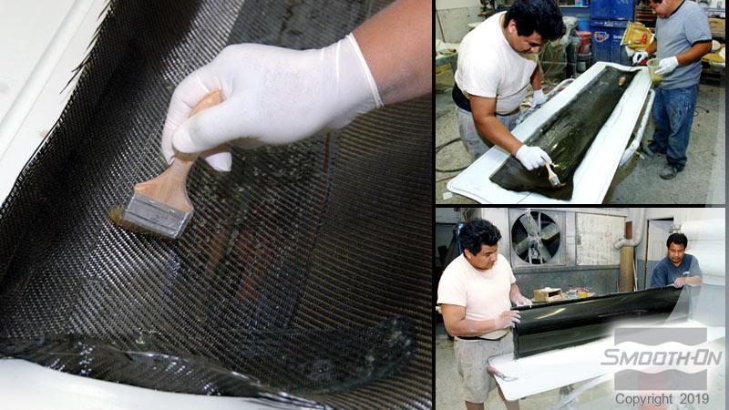 EpoxAmite™ 101 can be used with reinforcements such as S-Glass, E-Glass, Kevlar and Carbon fibers for lay-up applications or composite parts. EpoxAmite™ 101 can also be mixed with fillers such as fumed silica for gel coat applications. Urefil™ 3, Urefil™ 7 and other fillers can be added for fairing, filleting or bonding applications.