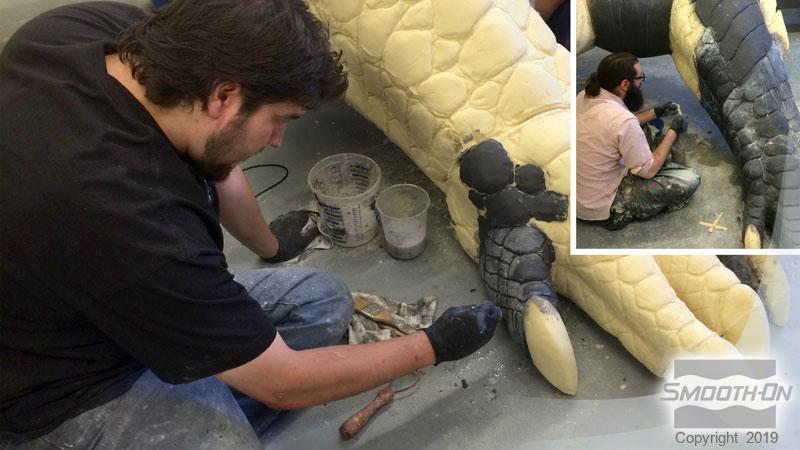 Stamp, Sculpt or Mold Once in place, putty can be stamped using a rubber stamp (such as one made with Rebound 25™ brushable silicone). Apply alcohol to stamp detail before using for precise detail and to keep stamp clean. Sculpt using gloved hands or tools. Putty can also be pressed into a silicone rubber mold to reproduce detail.