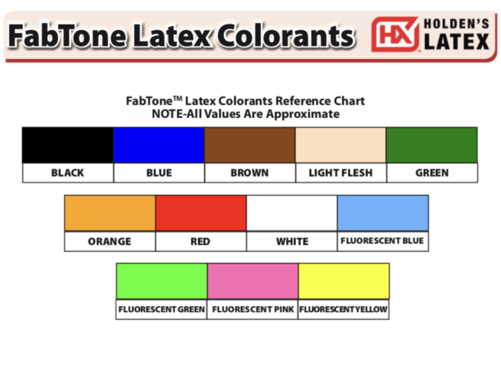 Fab-Tone colors are highly concentrated and should be used in small amounts. They mix into the latex extremely well to give brilliant shades and hues.
