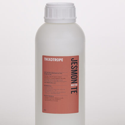 The Jesmonite Thixotrope is added to the Jesmonite AC100 mix to thicken the material to a ‘gel-coat’ consistency. This is useful when brushing or spraying materials onto moulds with vertical faces as it prevents the material from slumping. Jesmonite Thixotrope is added to the complete Jesmonite AC100 mixture and is mixed in using the Jesmonite High-Shear Mixing Blade. Add drop by drop until the desired consistency is achieved. Typical inclusion rates by weight are 2g–6g per kg (0.2-0.6%) of complete Jesmonite AC100 mix.