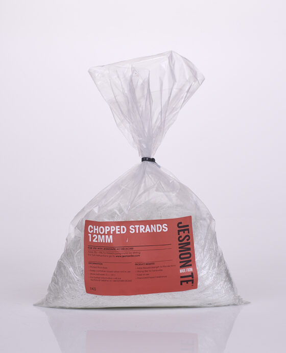 These can be added to all Jesmonite composites to give increased strength in thin section castings, and also to act as a filler to assist in laminating (see relevant instructions for further details). They are available in three types: 6mm and 12mm Standard, and 12mm Coarse which are designed specifically for use with Jesmonite AC730 to create a premix. Chopped strands can also be used to add impact resistance when applying thin sections of Jesmonite to carved objects made from polystyrene.