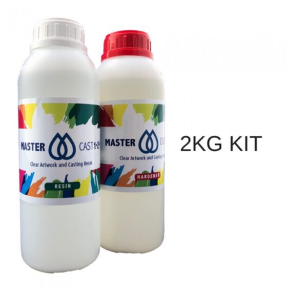Master Cast is a two part epoxy resin with an easy 1:1 mix ratio by volume. The resin self levels to form a perfectly flat and shiny finish. Once cured, Master Cast provides a clear art coating resin that won’t shrink or distort over time. It can be applied by pouring or by brush/roller and cures at ambient temperature. It has excellent UV resistance, clarity and transparency making the resin system particularly suitable for the protection and decoration of: paintings, artwork, sculptures, badges, photos or just about any creative project. Please be advised although our resins are U.V stabilised this does not mean they are U.V proof. Ultimately all our clear epoxy resins will show signs of U.V degradation over time. We work constantly to improve the U.V protection however resins are plastics and over time the sun will always win that battle.