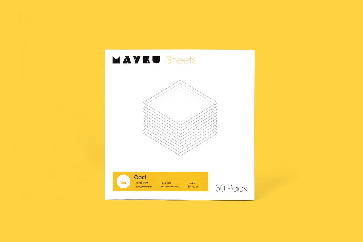 Transparent and food-safe 0.5mm sheets for making reusable molds. The slight flex and non-stick surface that the sheet provides ensures that your templates and casts can be removed with ease. Fully recyclable, partly made from recycled plastic waste. Please note that the product name is changing from Mayku Cast Sheet to Mayku Clear Sheet 0.5mm, they remain the same product.