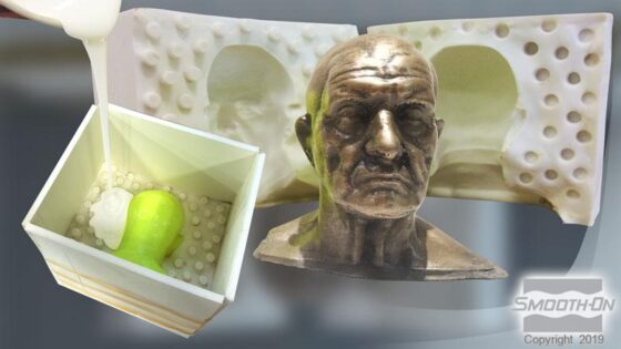 Pouring / Curing / Post Curing– – For best results, pour your mixture in a single spot at the lowest point of the containment field. Let the rubber seek its level up and over the model. A uniform flow will help minimize entrapped air. The liquid rubber should level off at least 1/2” (1.3 cm) over the highest point of the model surface. Allow the mold to cure 4 hours at room temperature (73°F / 23°C) before demolding. Post curing the mold an additional 4 hours at 150°F / 65°C will eliminate any residual moisture and alcohol that is a by-product of the condensation reaction that can inhibit the cure of some urethane resins and rubbers. Allow mold to cool to room temperature before using. Do not cure rubber where temperature is less than 65°F /18°C.