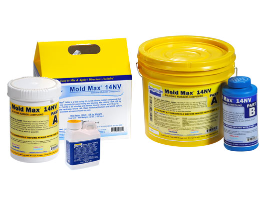 Measuring & Mixing – Before you begin, pre-mix Part B thoroughly to re-disperse pigments that may have settled. Using a gram scale, dispense required amounts of parts A and B into a mixing container and mix for 3 minutes. Scrape the sides and bottom of the container several times After mixing parts A and B, vacuum degassing is recommended to eliminate any entrapped air in pourable Mold Max™ rubber. Vacuum material for 2-3 minutes (29 inches of mercury), making sure that you leave enough room in container for product expansion.