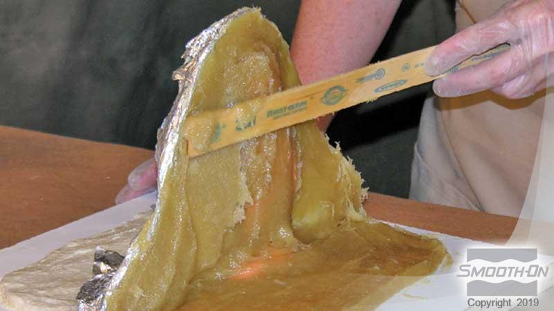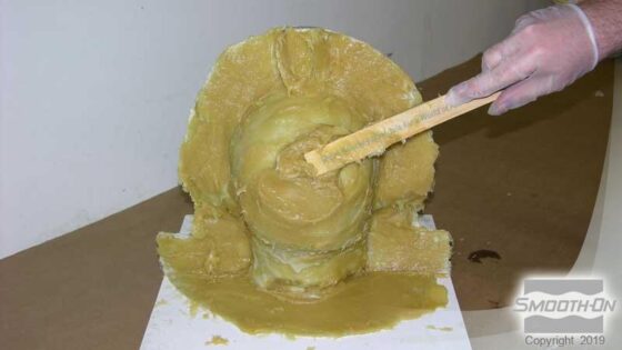 Preparation – Materials should be stored and used in at room temperature (73° F / 23° C). This product has a limited shelf life and should be used as soon as possible. Mixing should be done in a well-ventilated area. Wear safety glasses, long sleeves and rubber gloves to minimize contamination risk. If making a 2 or more piece mother mold, apply appropriate shim apparatus to rubber mold exterior.