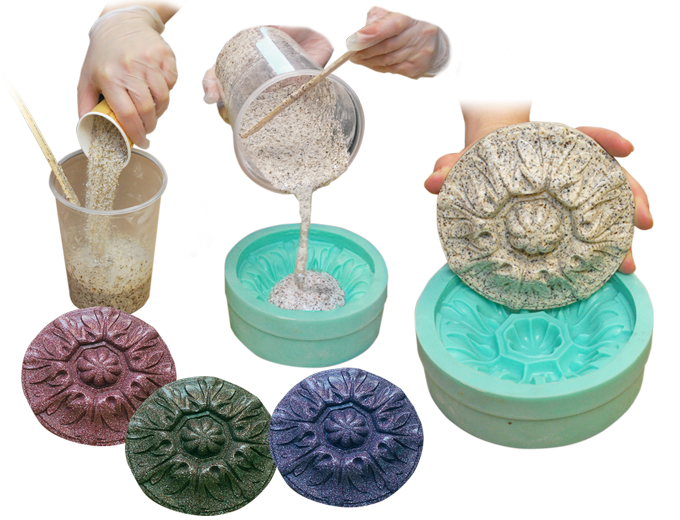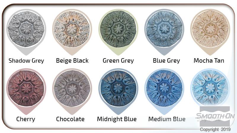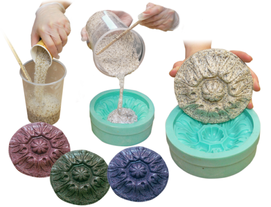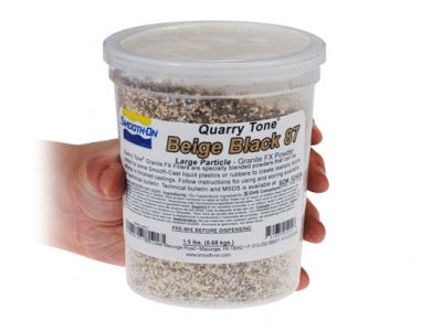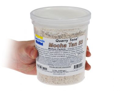 Pre-mix before dispensing. Store and use all materials at or near 73°F/23°C. Quarry Tone™ fillers must be kept dry. Use with adequate ventilation. Read and follow directions for resin used to mix with Quarry Tone™ fillers. The following example features Smooth-Cast™ 325 (A+B) mixed with Quarry Tone™ powder. The powder must be thoroughly dispersed into a two component liquid resin or rubber to a uniform consistency.