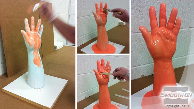 Note: Although not necessary, adding a small amount of Silc-Pig® color pigment to every other mix of rubber will help you distinguish one layer from the next. Ensures that you apply a thorough coating each time and help build uniform layers.