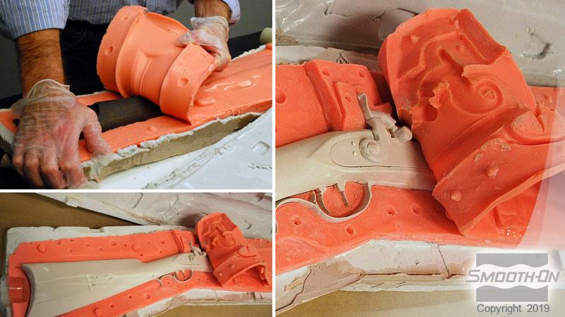 Using The Mold – When first cast, silicone rubber molds exhibit natural release characteristics. Depending on what is being cast into the mold, mold lubricity may be depleted over time and parts will begin to stick. No release agent is necessary when casting wax or gypsum. Applying a release agent such as Ease Release® 200 (available from Smooth-On) prior to casting polyurethane, polyester and epoxy resins is recommended to prevent mold degradation.