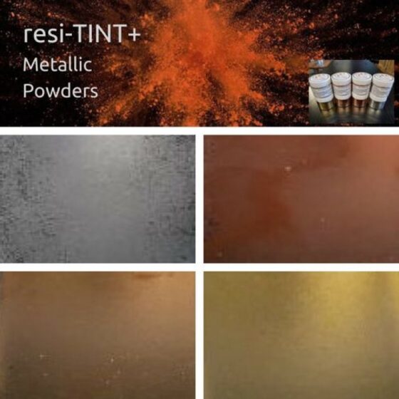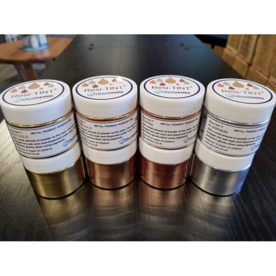 The powders can be used with our resi-TINT range of acrylic pigments or the range of resi-METAL metallic pigments