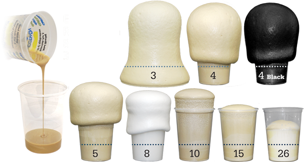 Cure Inhibition – Addition cured silicones may be inhibited by certain contaminants such as sulfur, polyesters, certain wood surfaces, epoxies, urethane rubber and tin catalyzed silicones resulting in tackiness at the pattern interface or a total lack of cure throughout the mold. If compatibility between the rubber and the surface is a concern, a small-scale test is recommended. Apply a small amount of foam onto a non-critical area of the pattern. Inhibition has occurred if the material is gummy or uncured after the recommended cure time has passed. This product will not cure against tin-based silicone rubbers.