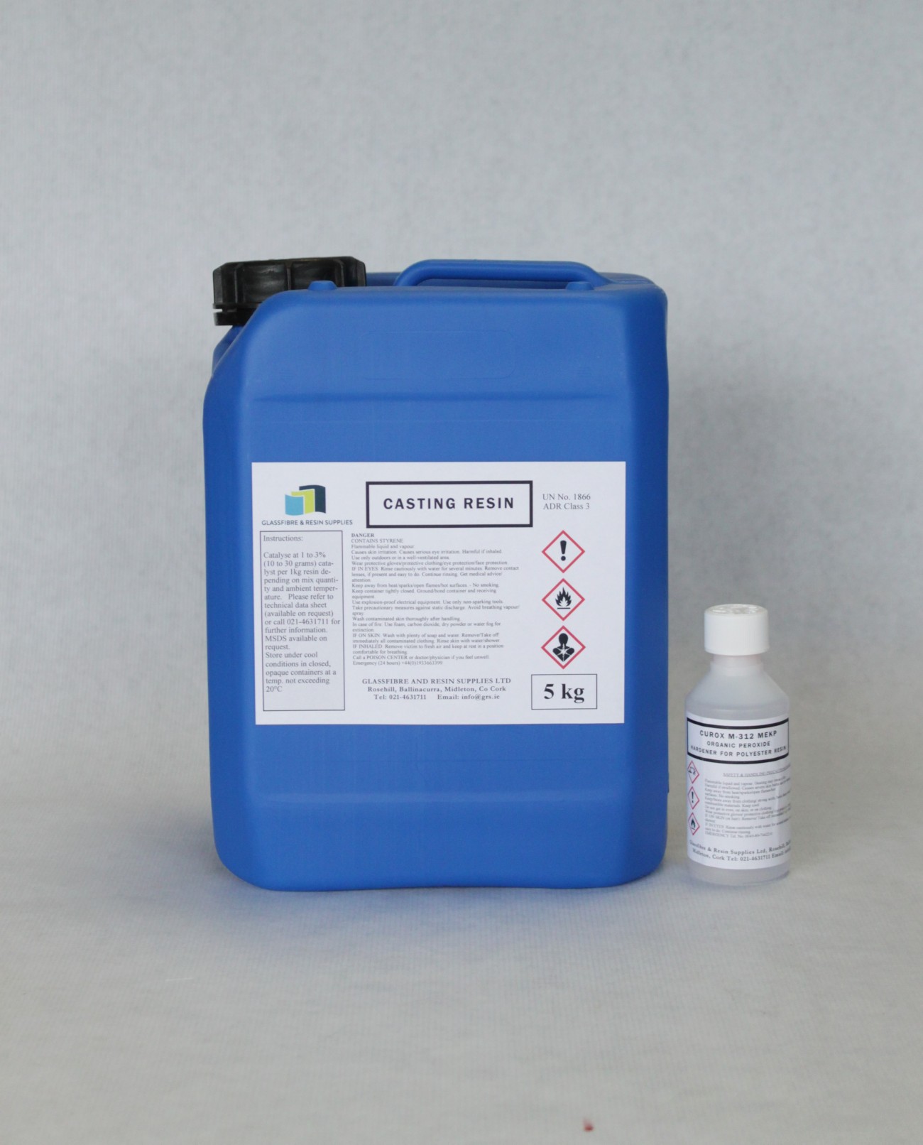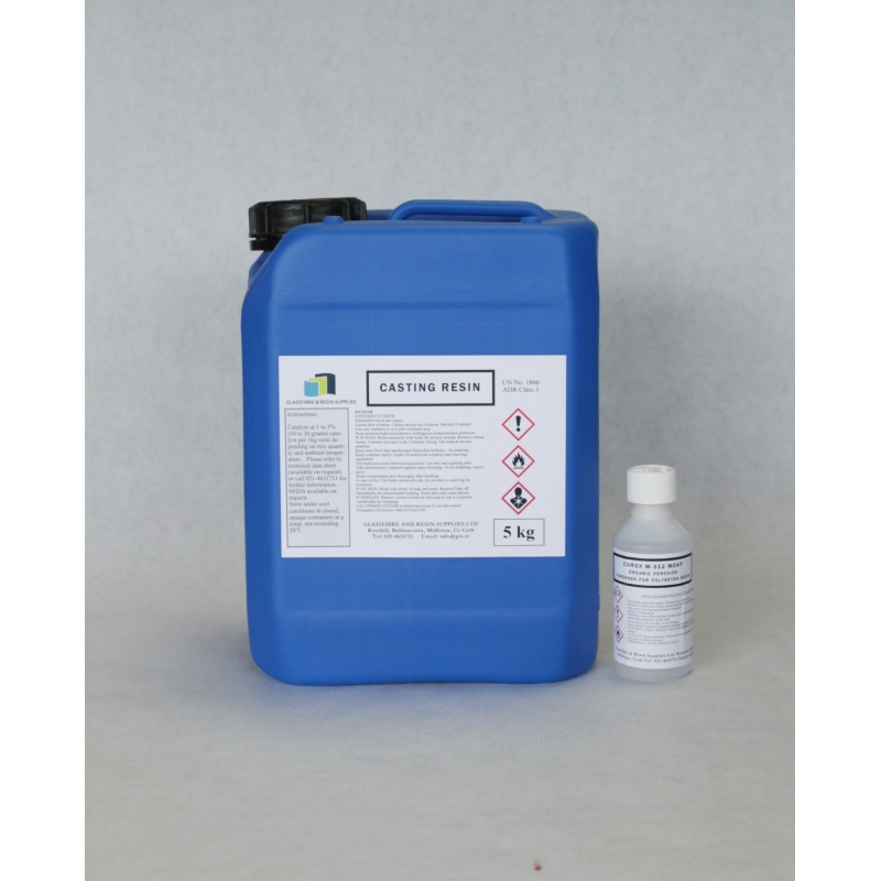 Where polyester resin is being cast into solid blocks, various special purpose resins are available which cure with reduced exotherm, thereby reducing shrinkage and the possibility of cracking. The resin is available ready to be loaded with a filler, at up to approx. 60% by weight.