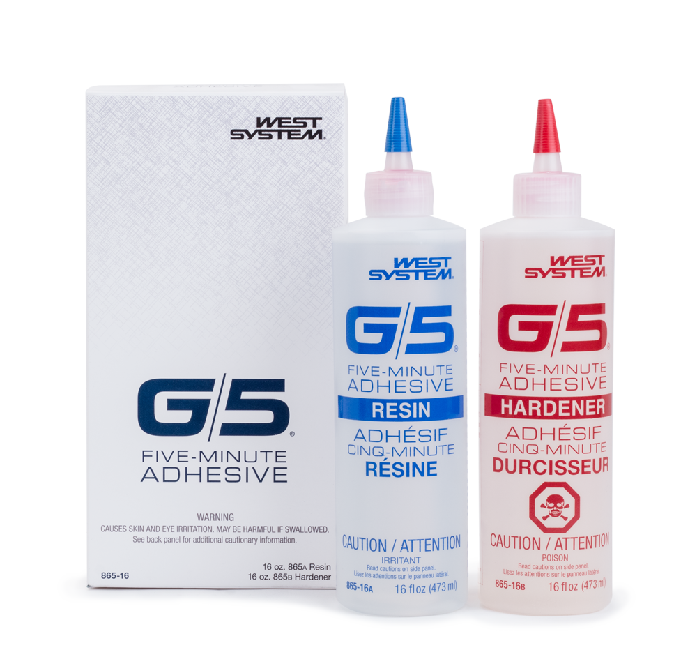 Known as the ‘Five Minute Epoxy’ for its fast cure time, the WEST SYSTEM® G/5® Adhesive specialty epoxy is extremely quick and easy to use.